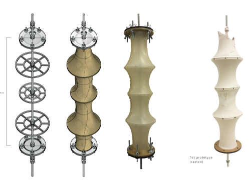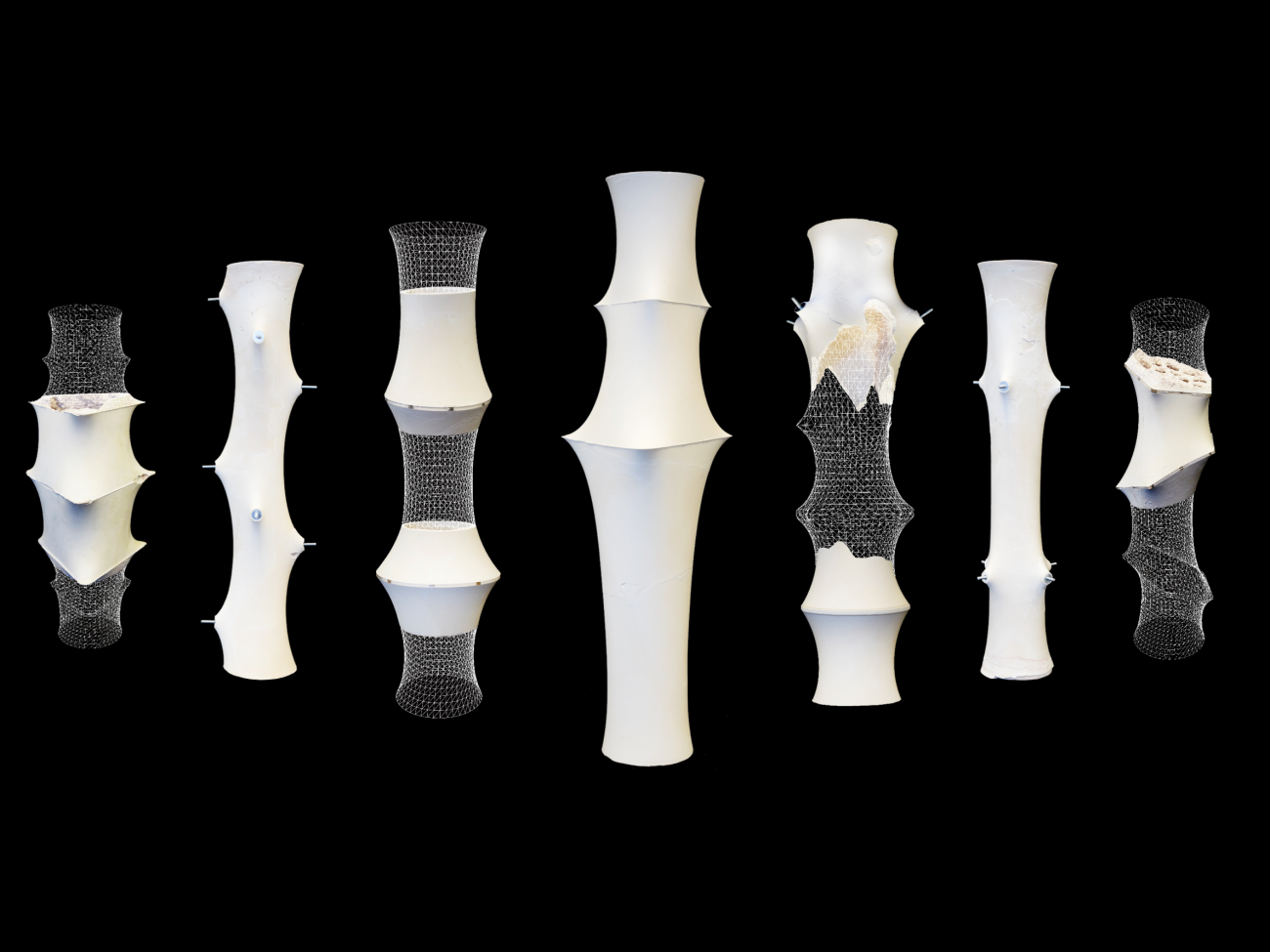 In this studio participants designed and prototyped innovative concrete formwork systems that use resourceefficient strategies to make new shapes of concrete elements possible. The work is based on rotoforming concrete in hyperelastic membranes, a process developed by the Digital Design Unit (DDU) of the Technische Universität Darmstadt.